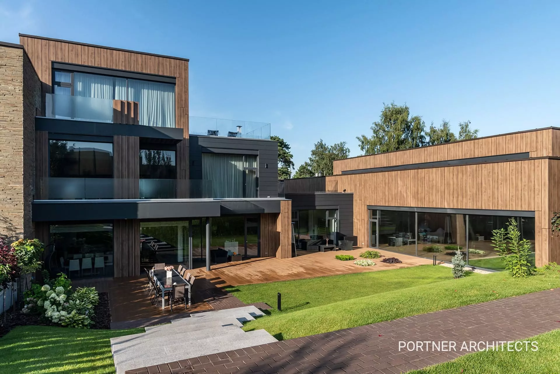 В современной архитектуре и интерьерном дизайне фасадная доска из термообработанной древесины как нельзя лучше раскрывает свою красоту при помощи оттенков и цветовых сочетаний. Для сохранения натурального цвета достаточно покрывать фасадную доску маслом раз в 3–5 лет!